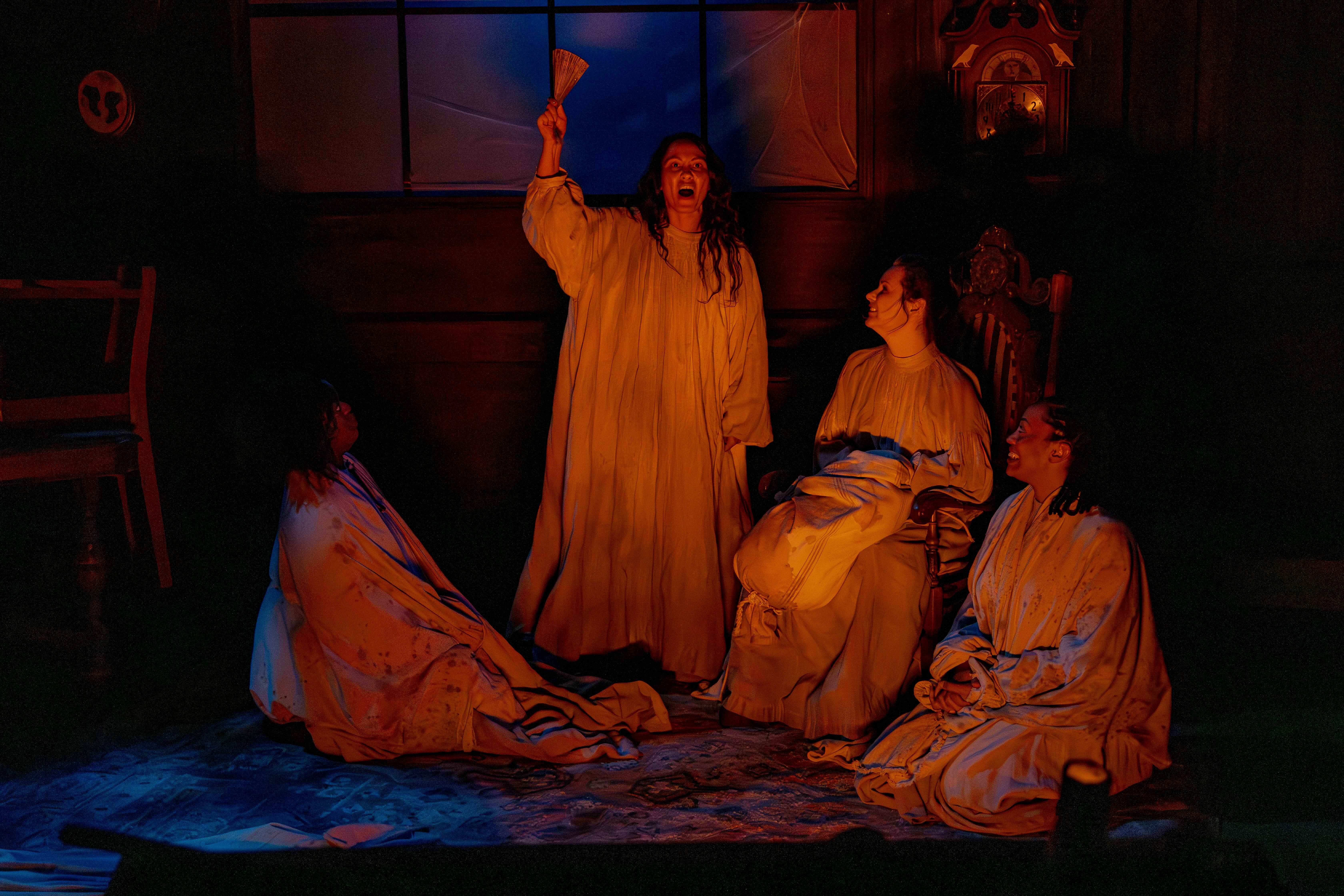 I will tell you plainly: The Ravenside Occurrence is a demanding piece of theatre. Snow’s script–under thoughtful direction by Caitlin McWethy–is working in multiple registers simultaneously. It’s part horror, part history, with comic moments and political commentary, and the production asks you to hold all of it at once. It’s a lot to absorb.
